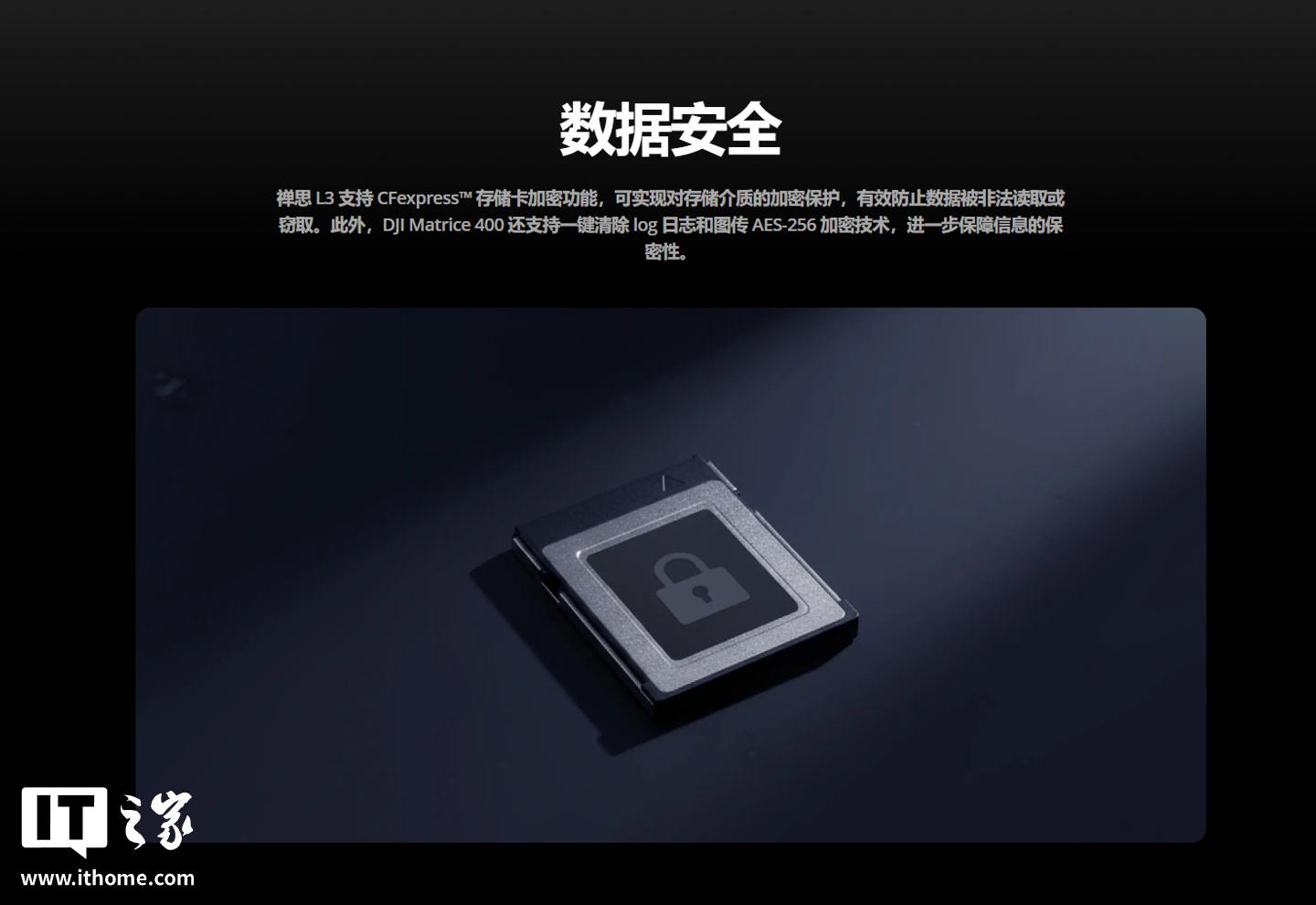 安全性方面,这款产品支持 CF Express 存储卡加密功能,有效防止数据被非法读取或窃取,还可一键清除 Log 日志,图传内置 AES-256 加密技术,进一步保障数据安全。